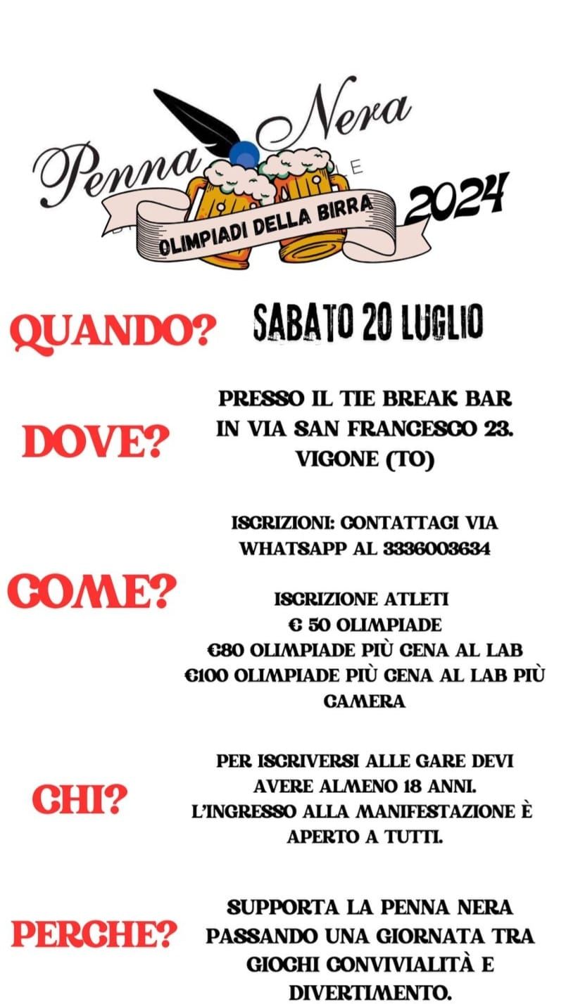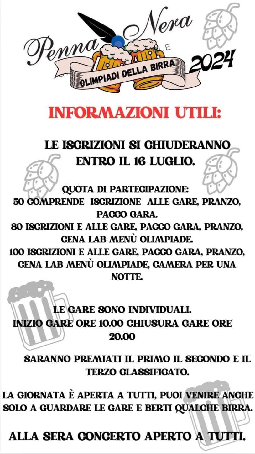 Chiunque sia maggiorenne può iscriversi e partecipare alle competizioni, ma l'evento è aperto anche a chi desidera semplicemente assistere, godendosi una giornata di allegria e convivialità. Unitevi a noi per un’esperienza unica, tra gare entusiasmanti e momenti di puro divertimento. Venite a vivere con noi le Olimpiadi della Birra e fate parte di una comunità appassionata, pronta a celebrare insieme la nostra bevanda preferita!